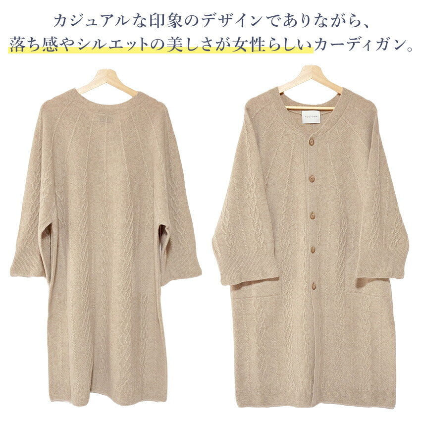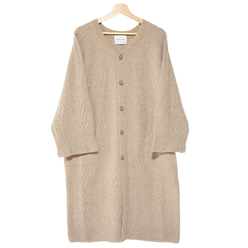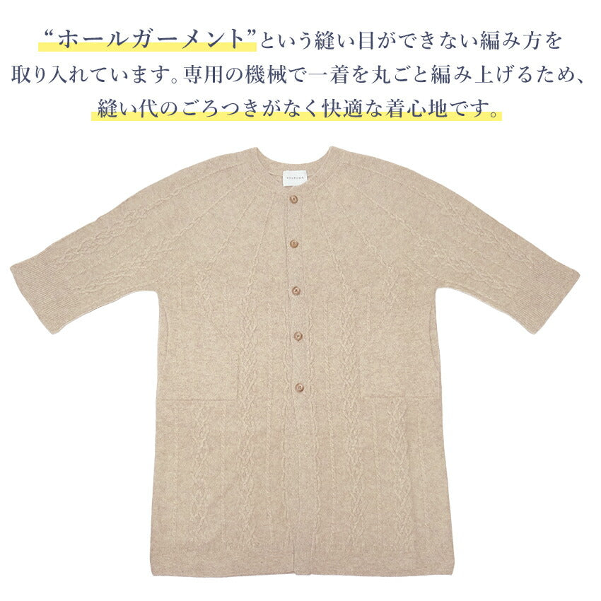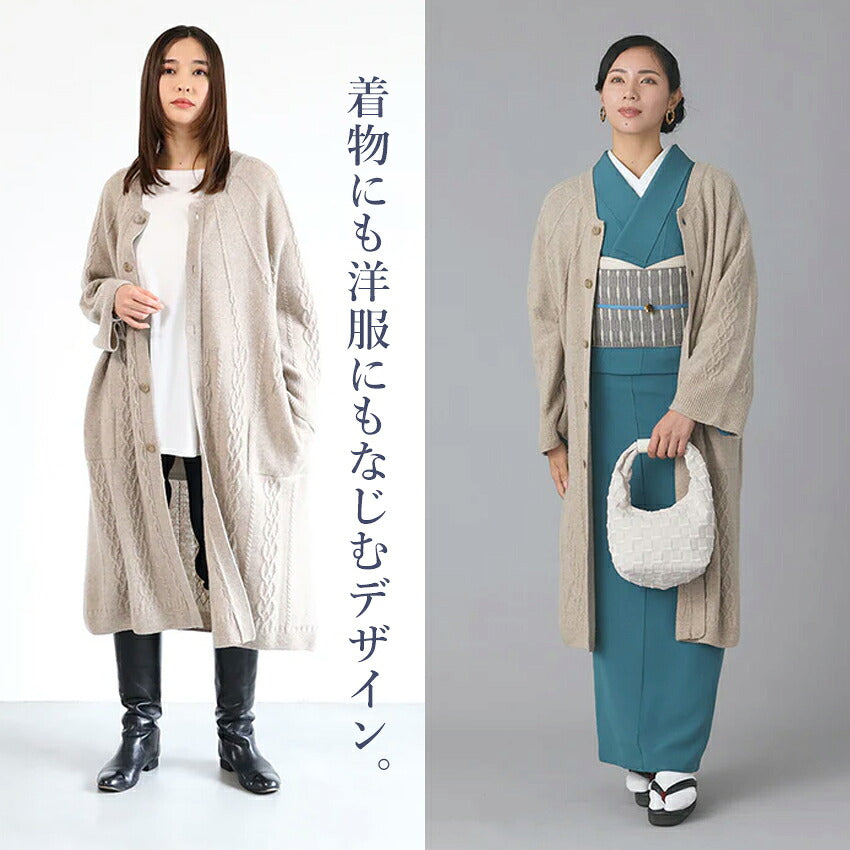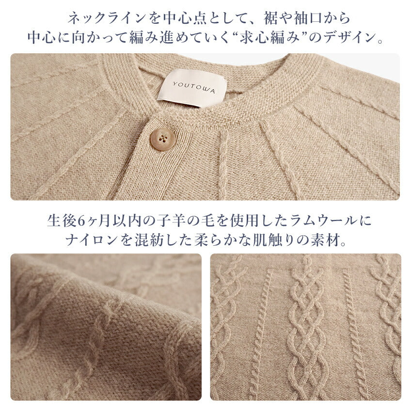 カーディガン 和装コート ベージュ YOUTOWA 継ぎ目のない求心編みのウール和装カーディガン 洋服にも合うモードでお洒落なデザイン