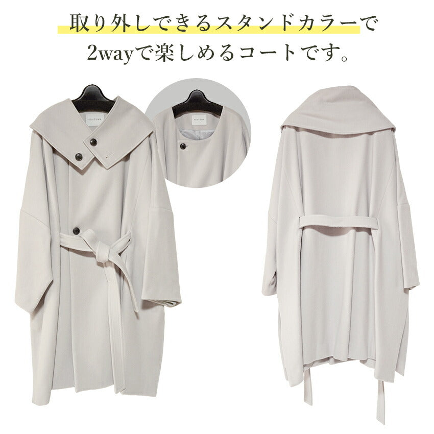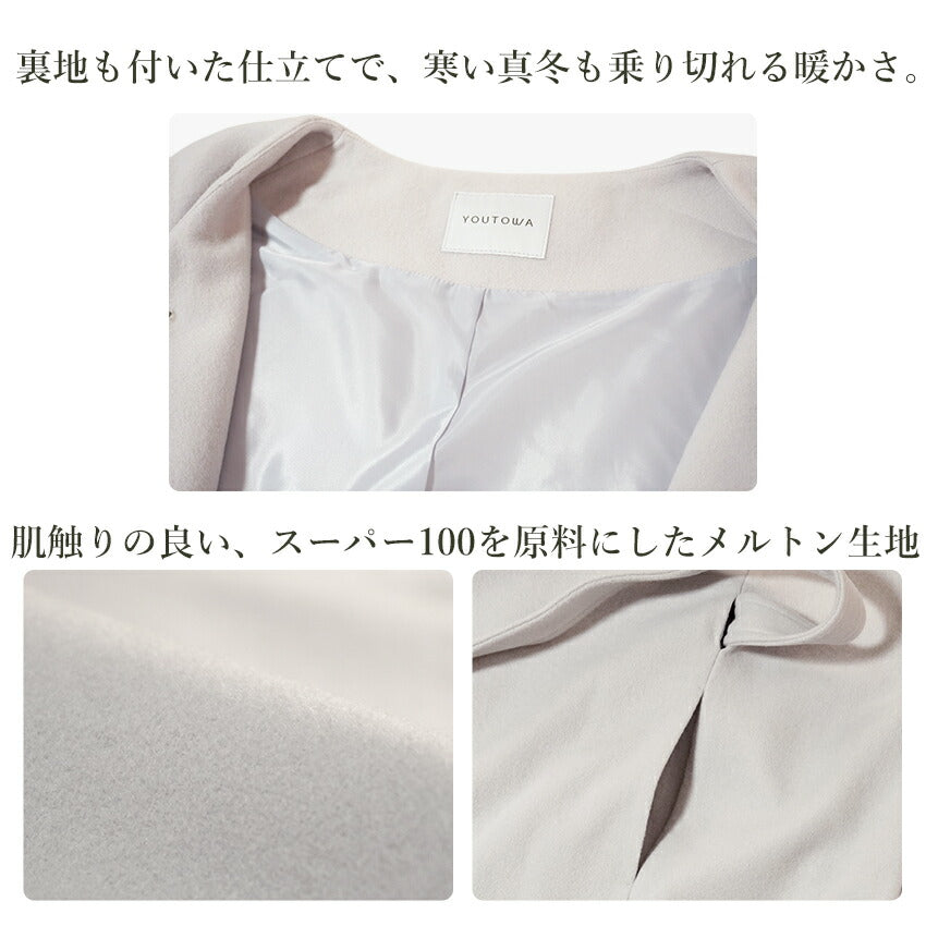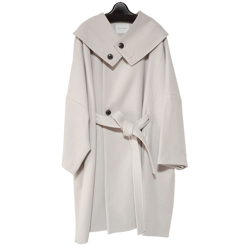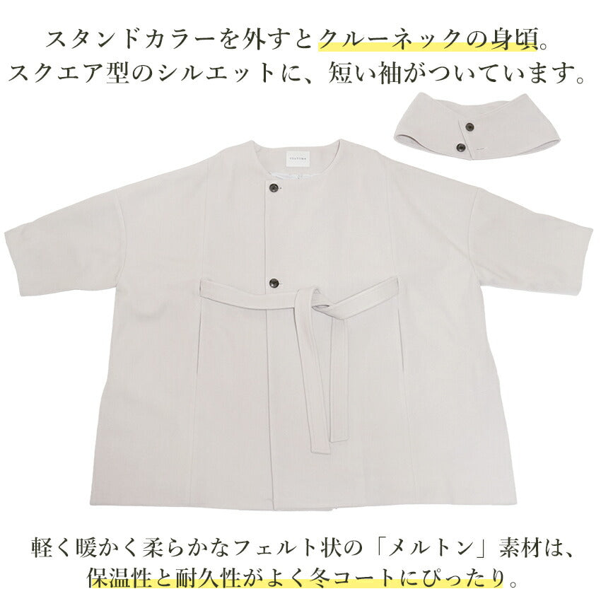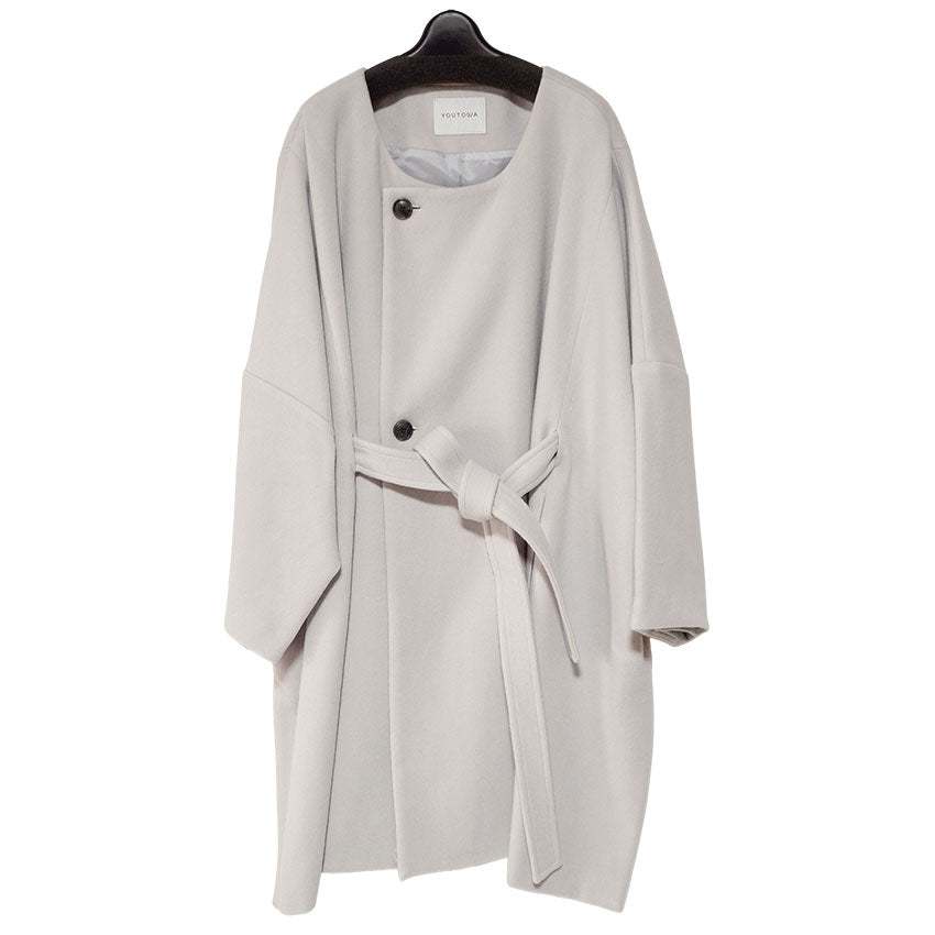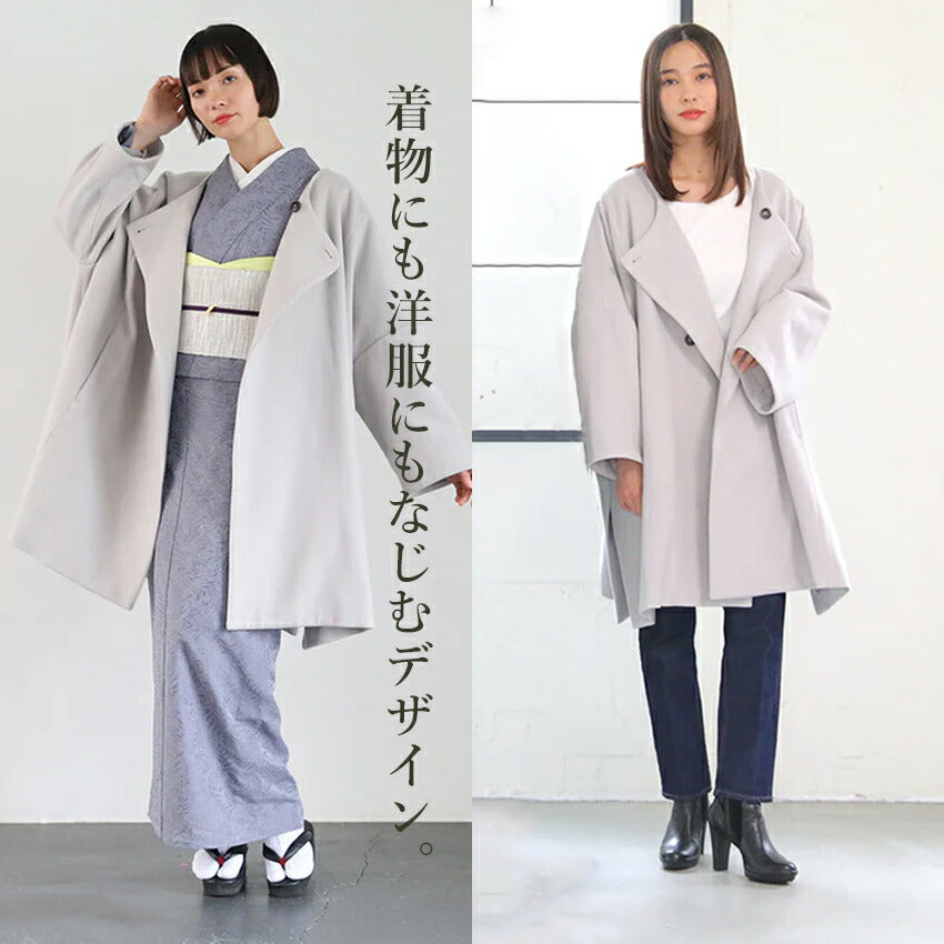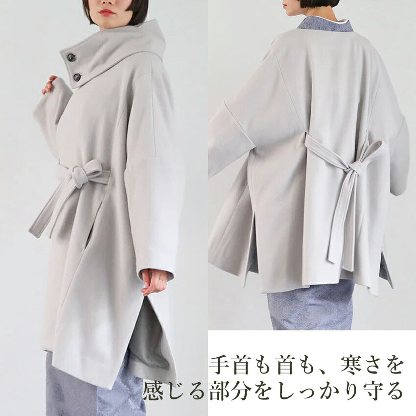 スタンドカラー付きスクエアコート ライトグレー YOUTOWA フェルト状の冬でもあったか和装コート シンプルで洗練されたデザインがおしゃれ