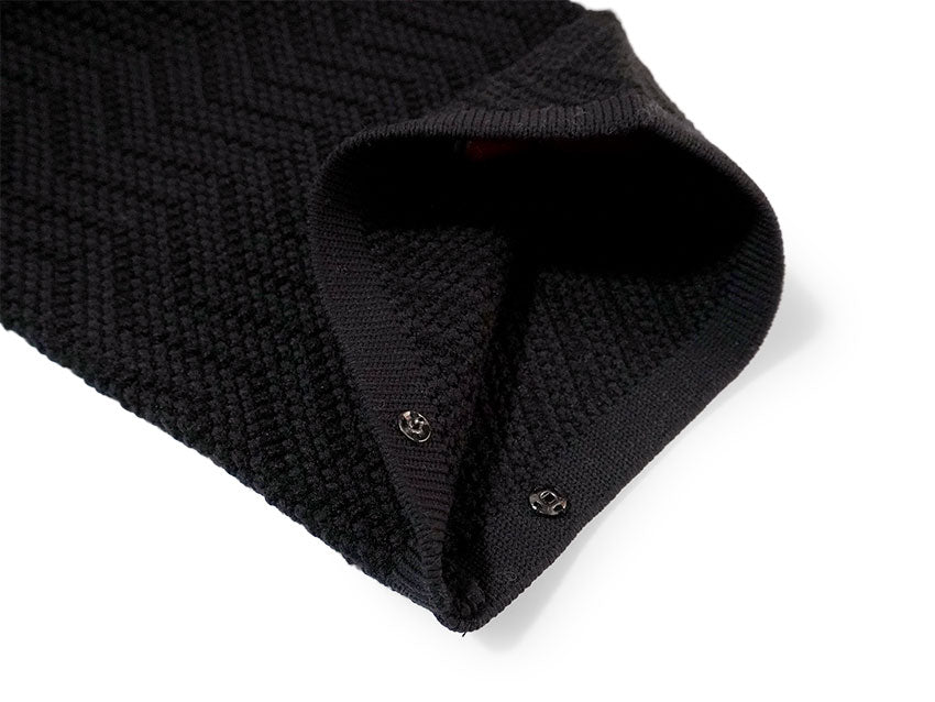 首元が寒い時は、襟を立ててボタンで留められる仕様。