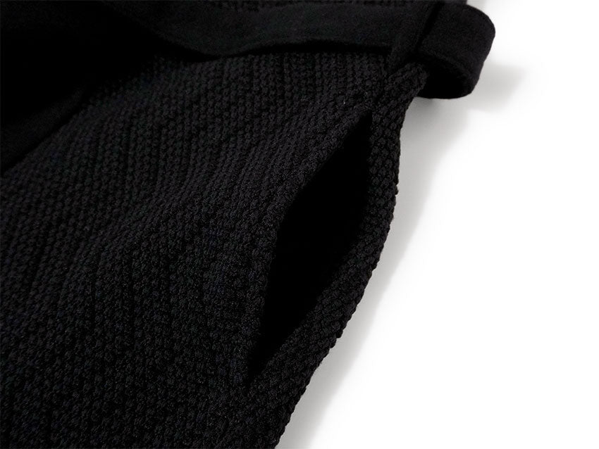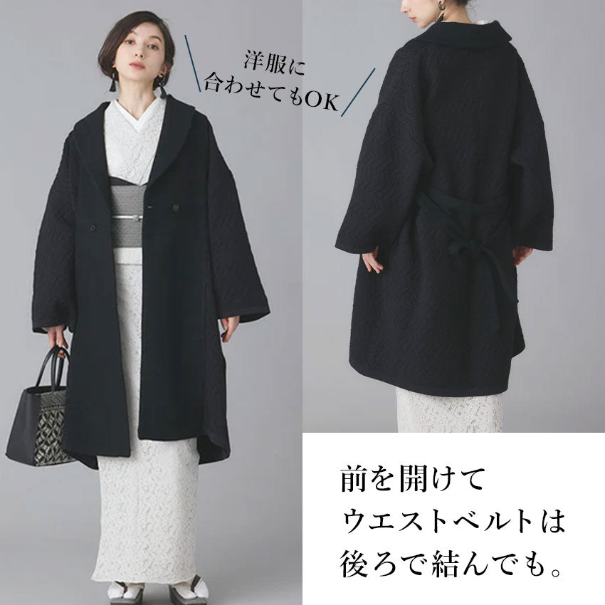 暖かすぎる時は前を開けてベルトを後ろで結んだり、