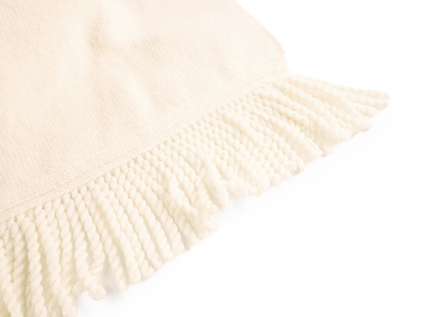 裾のフリンジがフリル状に重なり、