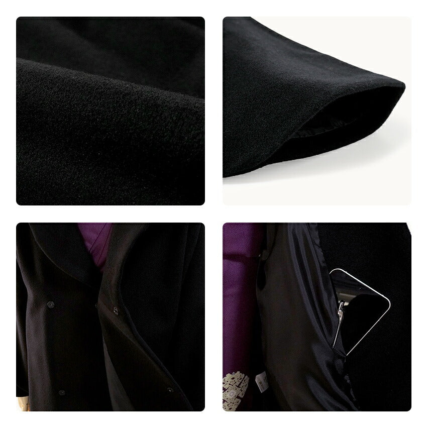カシミア10%・毛90%の上質素材を使用した<日本製>のへちま衿コートです。