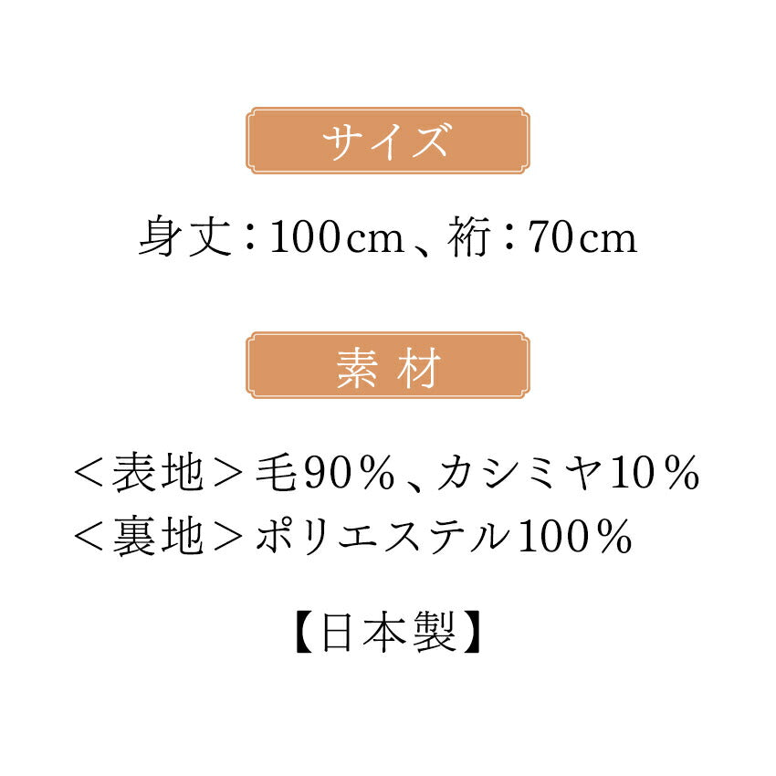 <表地>毛90%、カシミヤ10% <裏地>ポリエステル100% 【日本製】 |