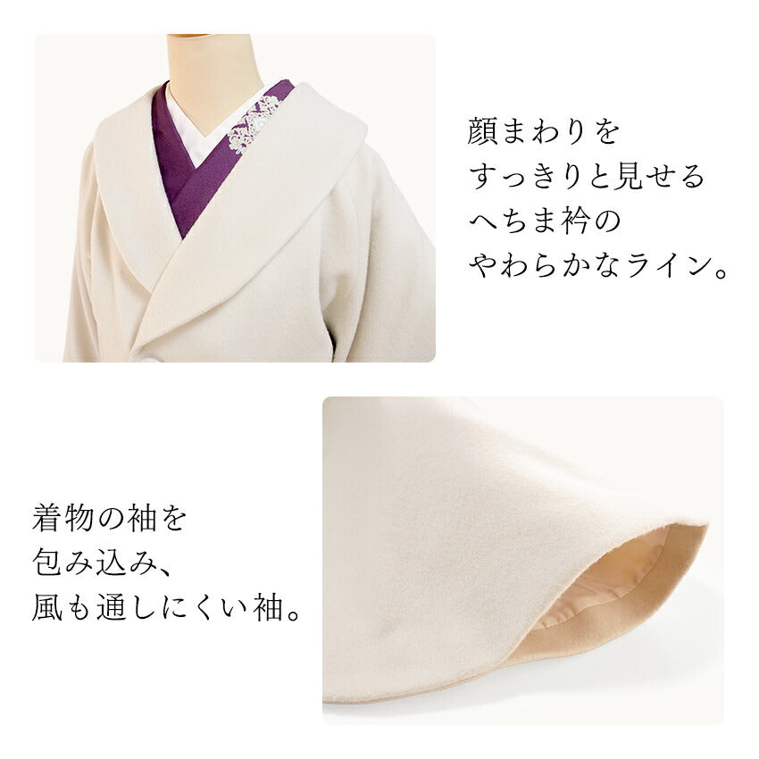 しなやかな風合いで着物の上から羽織っても生地がもたつかず、なめらかに体に沿います。