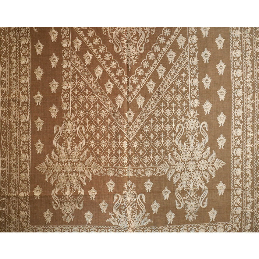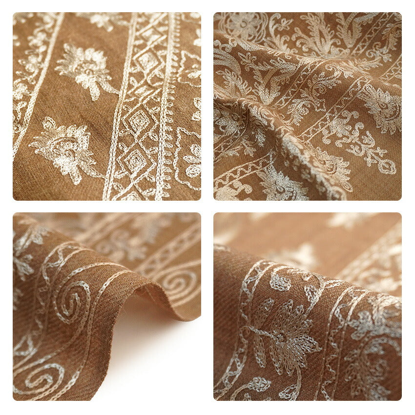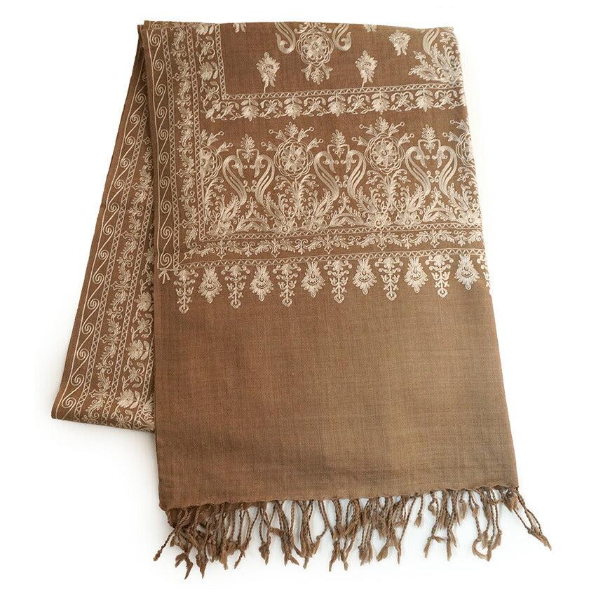 | ブラウン地に更紗柄のベージュ刺繍 |