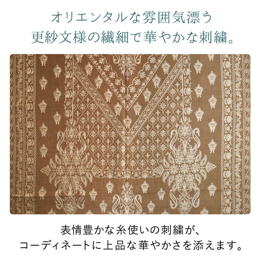 オリエンタルな雰囲気漂う更紗文様の繊細で華やかな刺繍。