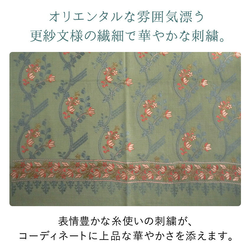 オリエンタルな雰囲気漂う更紗文様の繊細で華やかな刺繍。