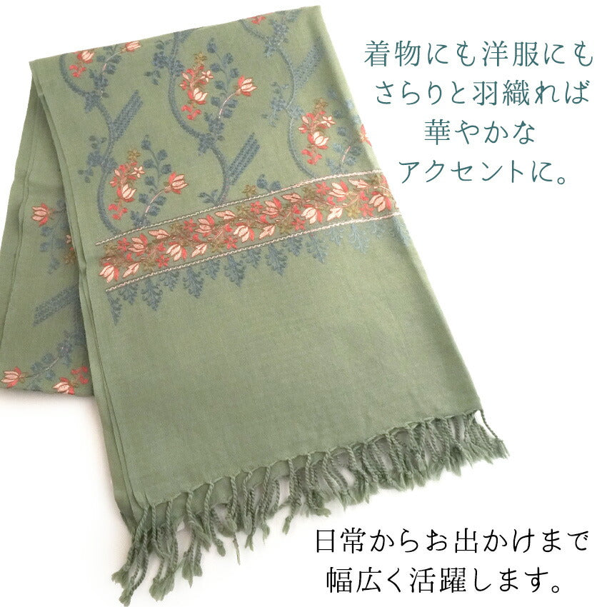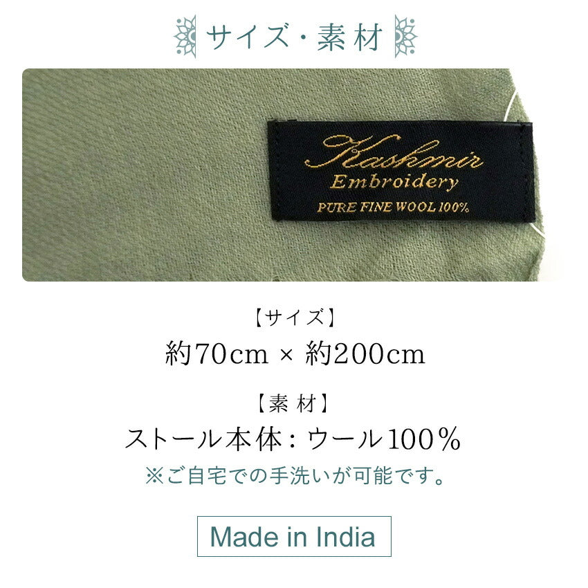 ストール本体:ウール100% ※手洗いが可能です。 Made in India(インド製) |