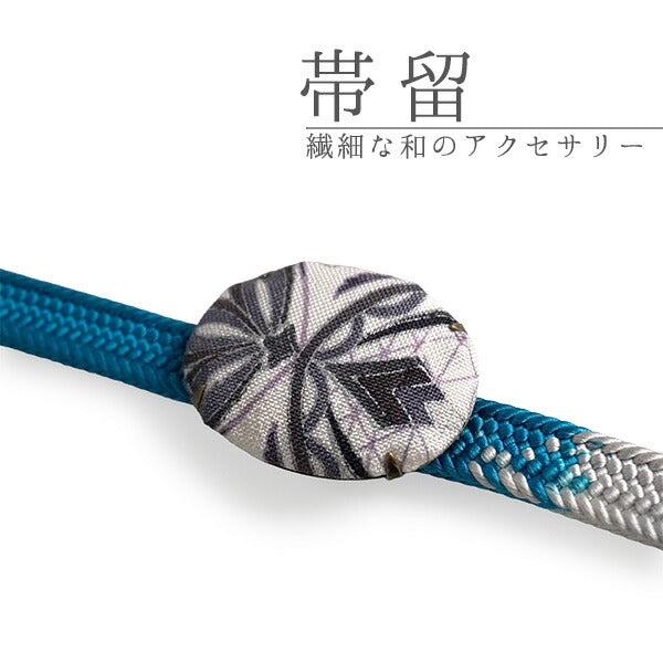 | 《帯留の使い方》 三分紐(さんぶひも)という細めの帯締めを通して使います。 三分紐は結んだら背中にくるっと回し、結びめはお太鼓の中に入れて隠しておきます。 浴衣帯に合わせたり、名古屋帯と合わせたり、 カジュアルなシーンでコーディネートをお楽しみいただけます。 |