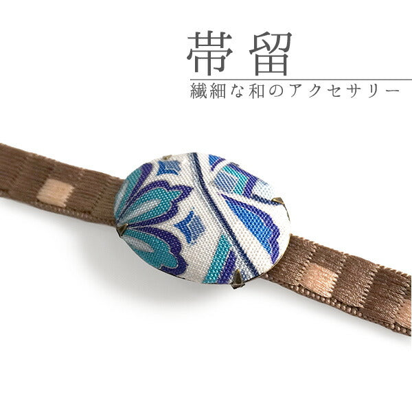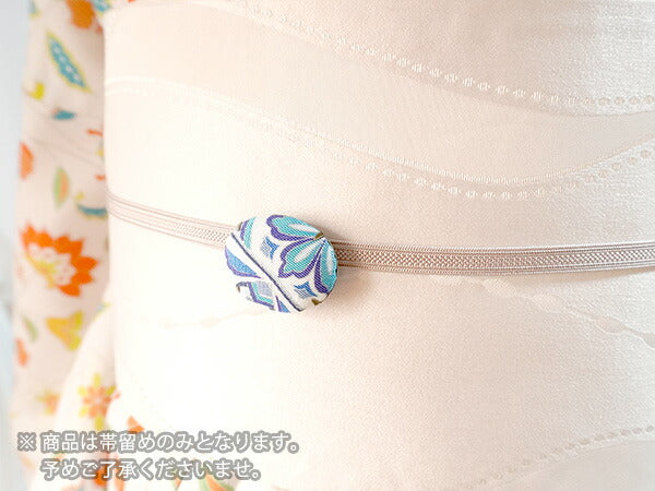 | 《帯留の使い方》 三分紐(さんぶひも)という細めの帯締めを通して使います。 三分紐は結んだら背中にくるっと回し、結びめはお太鼓の中に入れて隠しておきます。 浴衣帯に合わせたり、名古屋帯と合わせたり、 カジュアルなシーンでコーディネートをお楽しみいただけます。 |