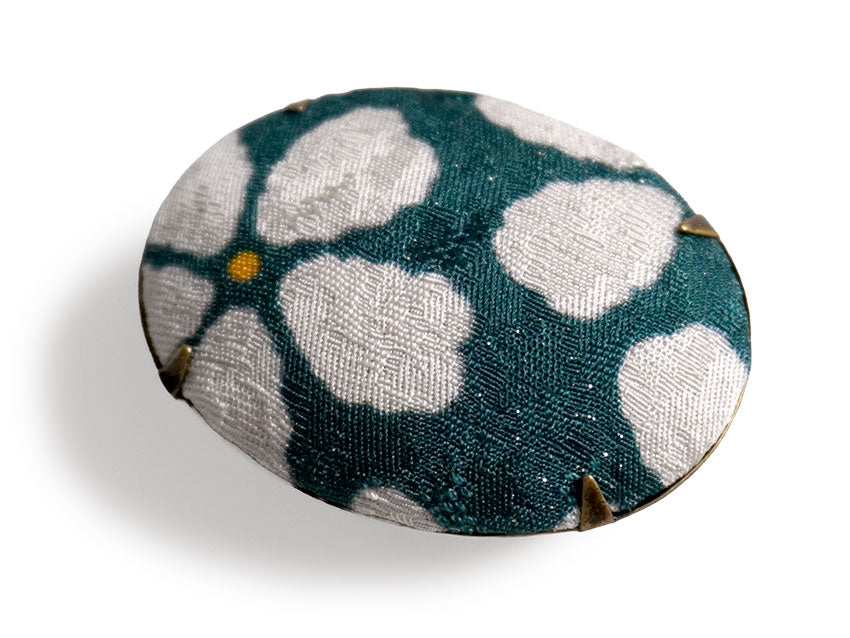 絹の帯地を使い、くるみボタンのように仕上げた