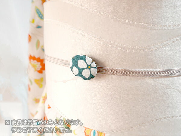 | 《帯留の使い方》 三分紐(さんぶひも)という細めの帯締めを通して使います。 三分紐は結んだら背中にくるっと回し、結びめはお太鼓の中に入れて隠しておきます。 浴衣帯に合わせたり、名古屋帯と合わせたり、 カジュアルなシーンでコーディネートをお楽しみいただけます。 |