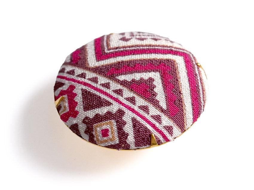 絹の帯地を使い、くるみボタンのように仕上げた