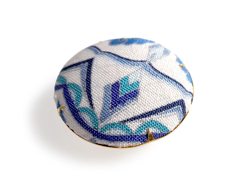 絹の帯地を使い、くるみボタンのように仕上げた