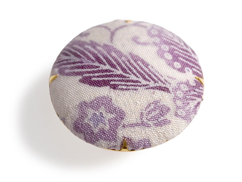 絹の帯地を使い、くるみボタンのように仕上げた