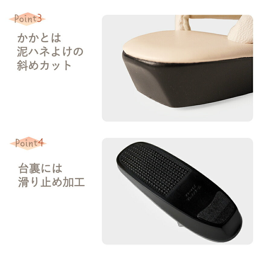 <フリーサイズ> 台全長 : 約23.5cm 台の幅 : 約8cm かかとの高さ : 約3.8cm 鼻緒の太さ : 約2cm 適応サイズ:22.5~24.5cm |