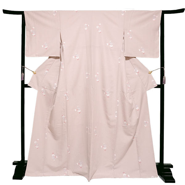 淡いくすみピンクの地に、素朴で可愛らしい瓢箪が飛び柄で描かれています。ふんわり明るく、女性らしい可愛らしさのある雰囲気です。 生地はテイジン素材の縮緬地で、高級感があります。 八掛の色:薄ピンク ※画像と柄の出方が異なる場合がございます。予めご了承くださいませ。 ※着用画像はAIによるイメージ画像です。 |