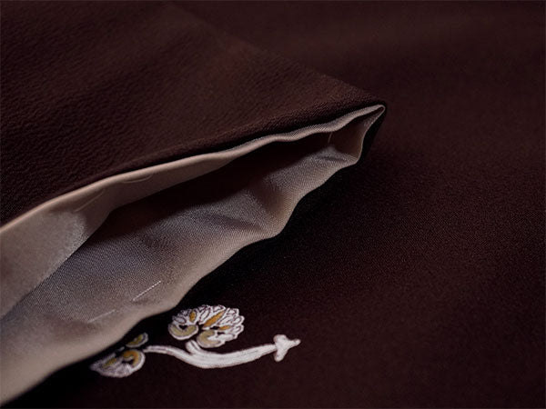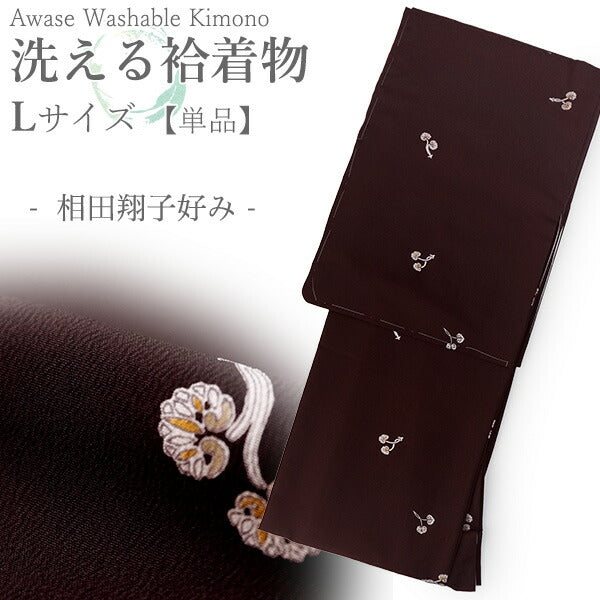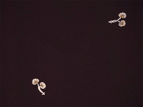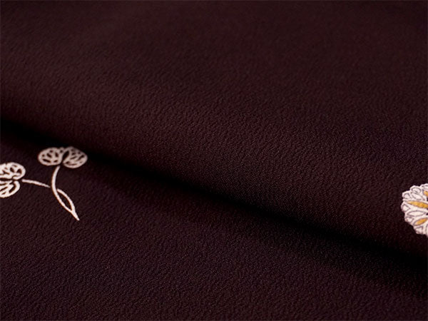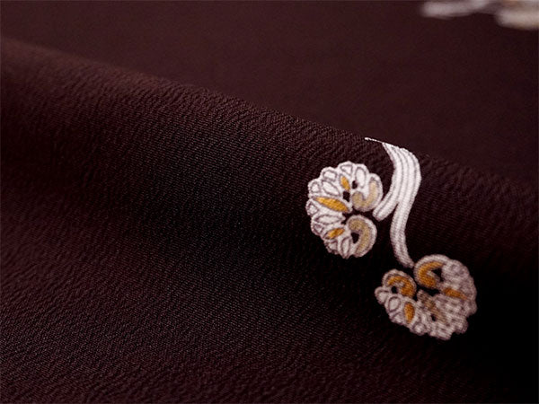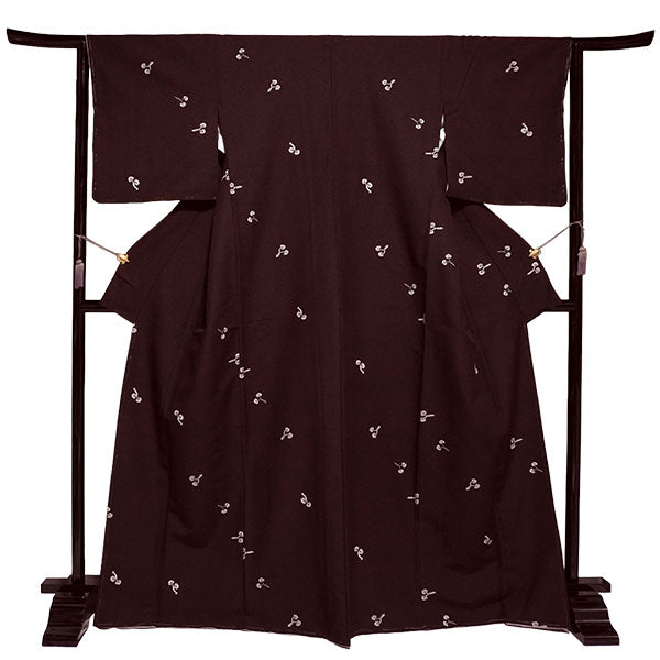 焦げ茶色の地に、小さな白の飛び柄で双葉葵が描かれています。葵に少し入った金色が上品さを引き立てています。 生地はテイジン素材の縮緬地で、高級感があります。 八掛の色:薄茶色 ※画像と柄の出方が異なる場合がございます。予めご了承くださいませ。 ※着用画像はAIによるイメージ画像です。 |