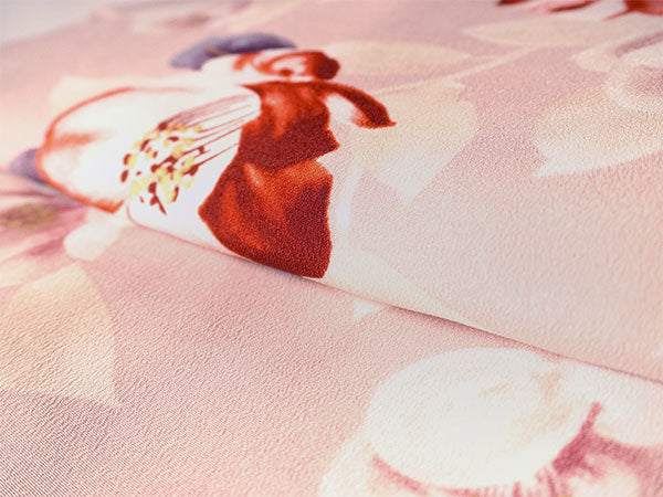 ちりめん地で品良く、華やかな柄ゆきがお洒落な小紋。