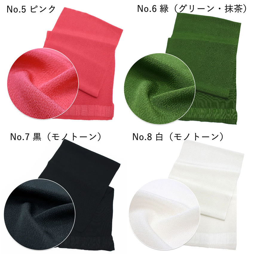 【帯揚げ】 ご希望の帯揚げカラーをご選択ください。 あなたの担当カラーは何色? No.1赤(レッド) No.2青(ブルー) No.3黄(からし) No.4紫(パープル) No.5ピンク No.6緑(グリーン) No.7黒(モノトーン/ブラック) No.8白(モノトーン/ホワイト) 絹 100% 【帯揚げくるみ】 素材:ポリプロピレン サイズ:長さ約30cm 厚み0.3mm |