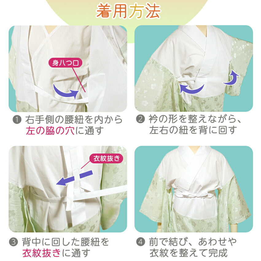 身頃に縫い付けられた腰紐でしっかり結ぶから、