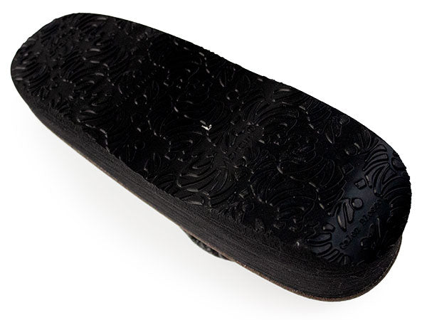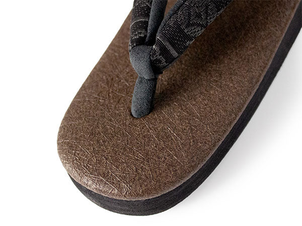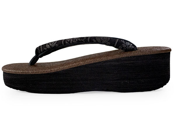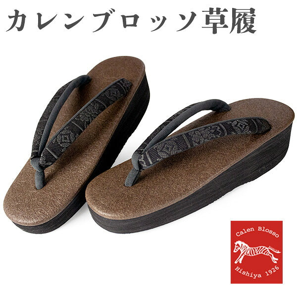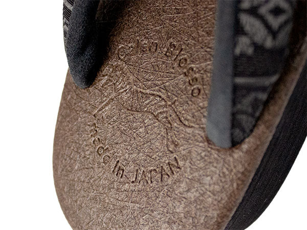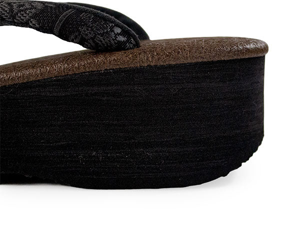 台:茶色(天)、ブラック(巻) 鼻緒上:黒地横段華紋柄(博多織) 鼻緒下:ダークグレー ※裁断の場所によって、柄の出方が異なります。あらかじめご了承くださいませ。 |