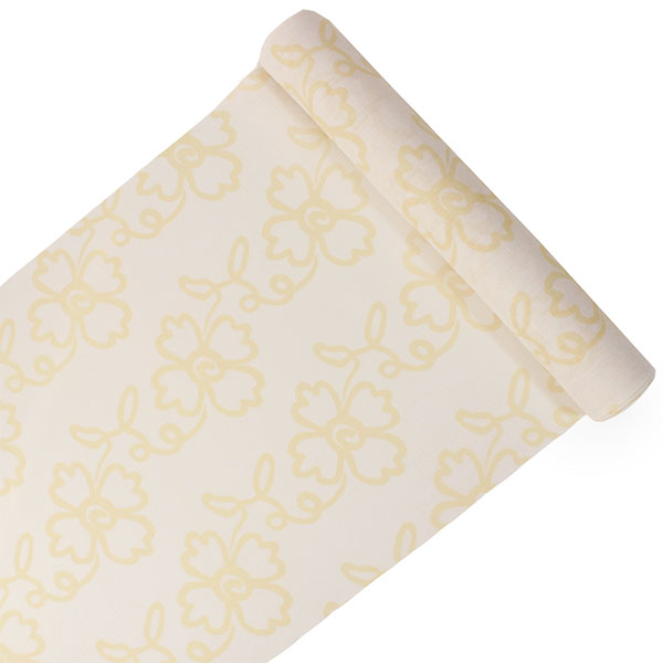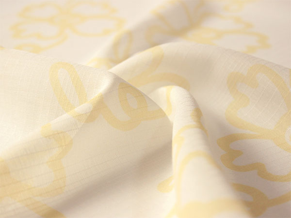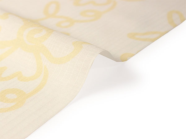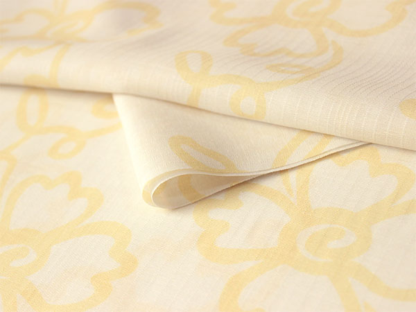 柔らかな白地に薄い山吹色で、少しとぼけた雰囲気の花と蔓が描かれています。さりげない色味で個性がチラリと覗くお洒落な柄の長襦袢です。 【紗】 透け感のある紗の生地で、滝縞のようなストライプが入っています。柔らかい手触りです。 |